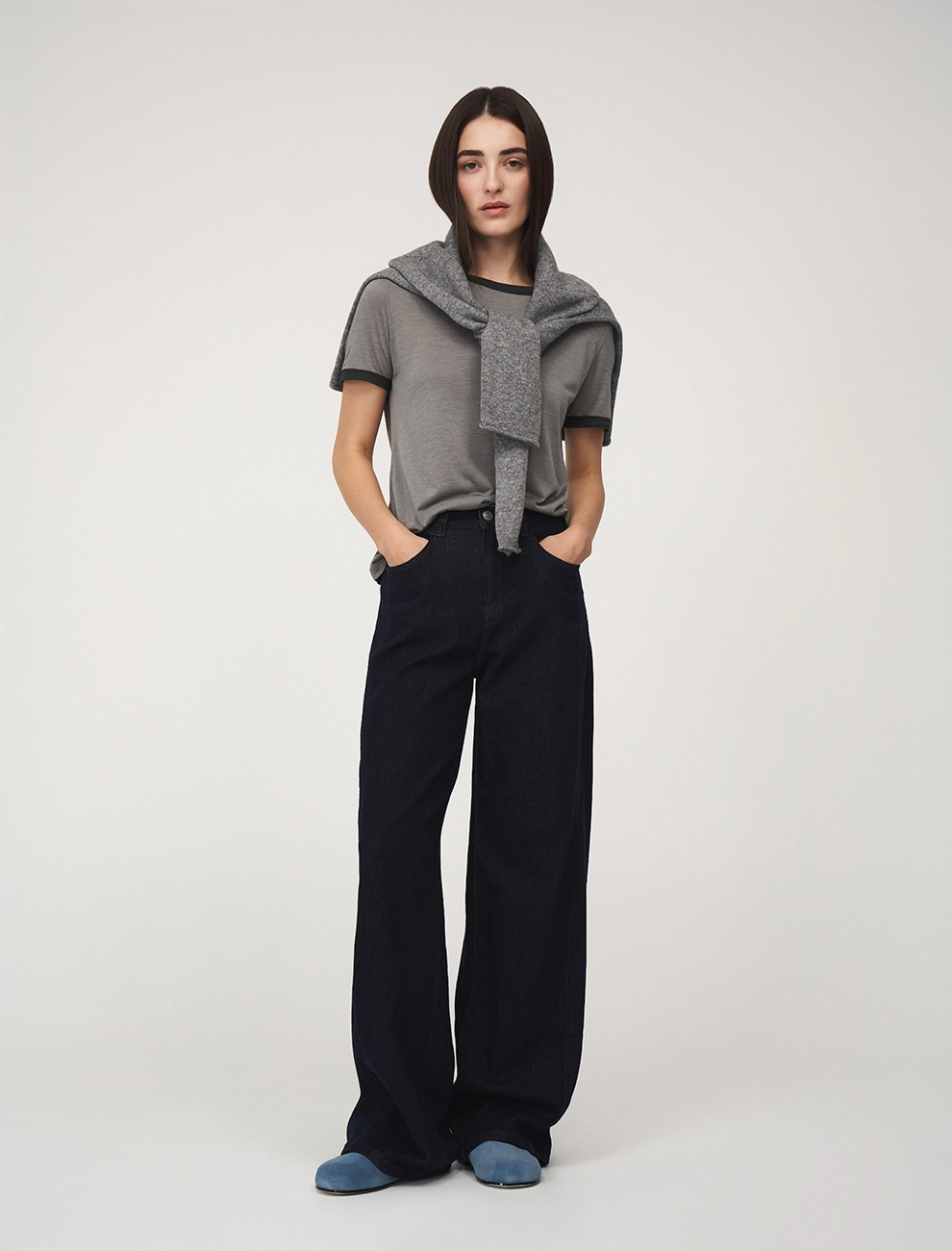 Выполнены из хлопка (90%) и спандекса, что обеспечивает комфорт и долговечность. Представлены трендовом «сыром» дениме синего цвета.